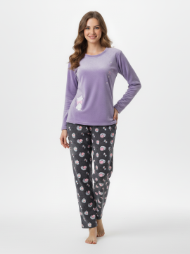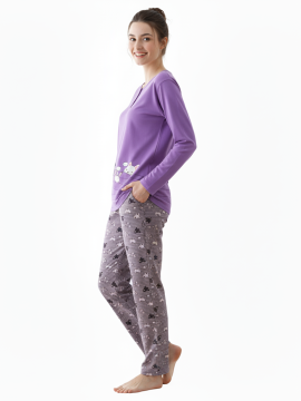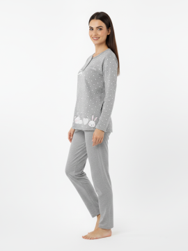 ΓΥΝΑΙΚΕΙΑ ΦΛΙΣ ΧΕΙΜΕΡΙΝΗ ΠΥΤΖΑΜΑ - ΓΚΡΙ ΜΕ ΣΧΕΔΙΟ ΓΑΤΟΥΛΑ